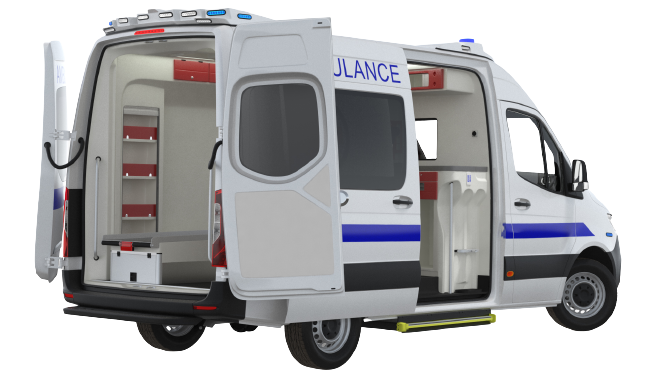 Specially designed ambulance ABS trims, with or without internal cabinets integrated into ambulance trims